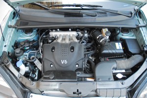 In addition to the smooth and efficient four-cylinder engine, the Tucson also offers an optional 2.7 liter V6 for improved acceleration and passing power. This ‘Delta’ series engine has an aluminum block and heads to keep weight down, while four-valve combustion chambers and DOHC ensure ample performance. Horsepower peaks at 173 at 6,000rpm and torque crests at 178lb.ft. at 4,000rpm. I was impressed with the launch in my Limited 4X4 model. The V6 with its standard four-speed Shiftronic automatic four-speed and 4X4 drive now delivers 18mpg/city and 23mpg/highway.