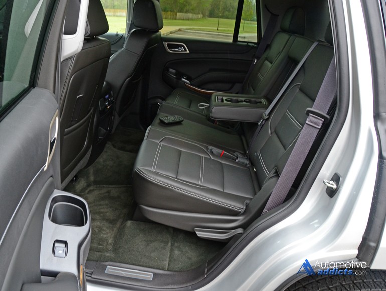 The interior quality of GMC’s Yukon has come a long way. The latest iteration of the cabin is luxurious yet does not demise withstanding durability. The use of aluminum and wood trim along with nicely accented stitched soft touch surfaces all exude a luxurious interior. The perforated heated and ventilated leather seats up front, the 2nd row head seats and 3rd row seats all find their proper placement for what you expect from GM’s largest SUV sans the longer wheelbase Yukon XL variant. Second row seating is much more inviting that the 3rd row, which can be a bit short on leg room for tall occupants.