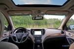 Power from the 2.0-liter turbo 4-cylinder proves to be quite the enjoyable experience. The front wheels tend to break loose even with the help of a passively-acting traction and stability control system. There is some turbo lag getting out of the hole from a dead stop, which proves to sap some of the potential that the nicely planted chassis of the Santa Fe Sport could have had. Still, with the quickly-surging torque sent through a 6-speed automatic transmission to the front wheels, the 2015 Santa Fe Sport 2.0T reaches 60 mph in about 7 seconds – which could be faster if it were not for the initial turbo lag. When things are in motion the Santa Fe Sport has no issue scooting along with authority and proving to be quite athletic and at times and light on its feet. The lightness comes into play when the front 19-inch tires frequently unplant themselves under mid-range throttle inputs. The throttle tip-in is inconsistent and requires a bit of attenuation from the driver to self-manage the front end of the Santa Fe Sport. The relatively quick and smooth-shifting 6-speed automatic attempts to adapt to your inputs, but only at the mercy of the turbo engine’s lofty revving under heavy footwork.