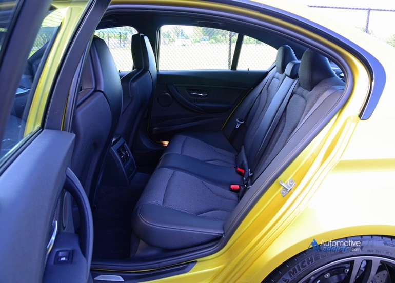 My only concerns with the 2015 BMW M3, other than me having to dig into my pocket to the tune of about $74,750 to claim the same vehicle in my current possession, is how many highly sought-after features are options and the a-la-cart selection method really burns my idea of what a $75K vehicle should consist of for feature content. My test vehicle, equipped with only a few select options, such as hard-biting carbon ceramic brakes, larger 19-inch wheels and tires to fit over those massively large brakes, and remarkably bright adaptive headlights by way of a LED lighting package, my BMW M3 still lacks the stuff that matters to me. It may sound petty, but my M3 test vehicle is missing a backup camera and parking sensors. I know, I can easily turn around and look when backing up – but we’re talking about a $75K vehicle here. Still, to the benefit of BMW, a Driver’s Assistance Plus package can be had for $1,900, which features a side and top view camera system. Okay, there, that’s my only qualm. Giving it a second thought, this is an ideal track car setup.