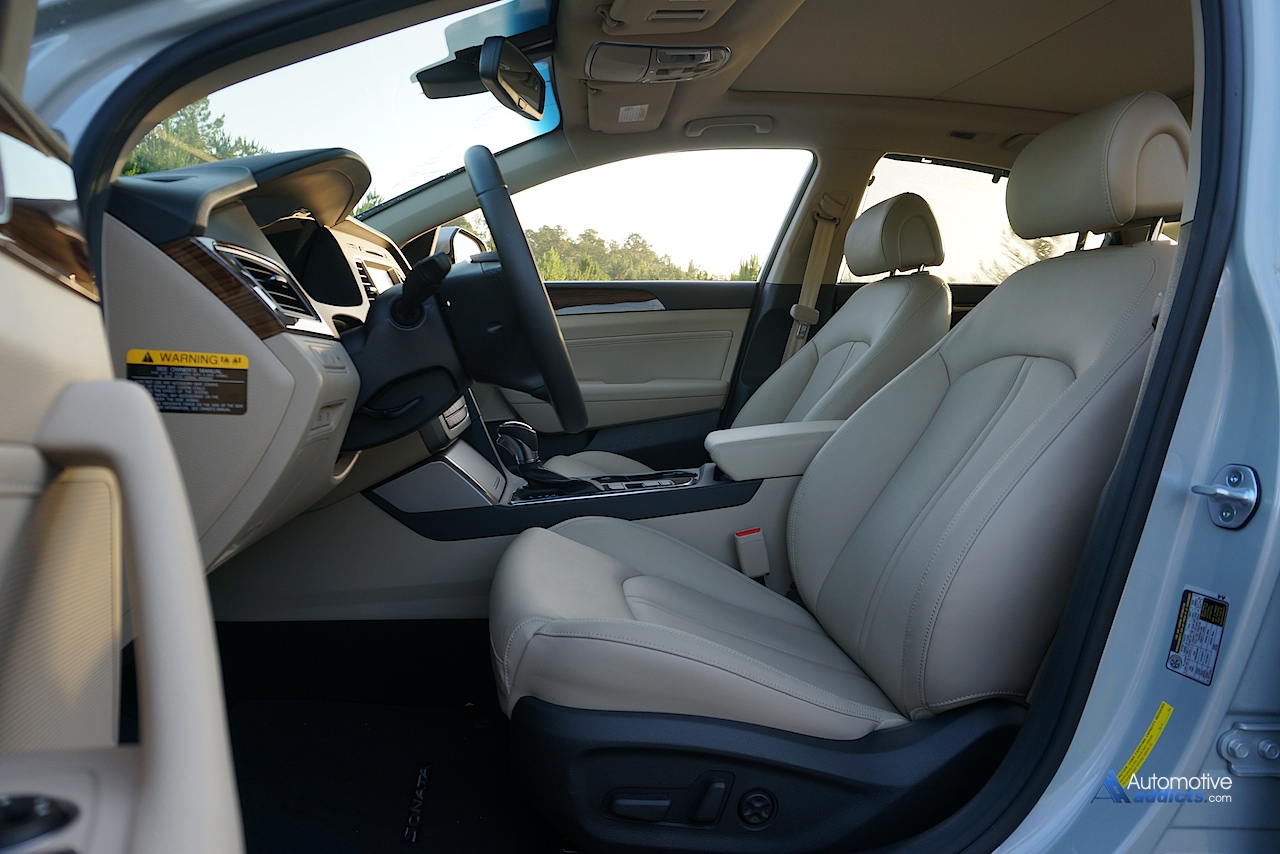 Available in two trim levels, the base Hybrid and Hybrid Limited, the 2016 Sonata Hybrid has been a decent alternative to the well-known and small spectrum of midsized hybrid vehicles. Redesigned inside and out for the 2016 model year, the new Sonata Hybrid Limited finds its way to my garage in an exclusive and unique Graphic Blue Pearl exterior paint job somewhat resembling a crafty putty color that is surprisingly pleasing to the eye. The only other exterior color choice for the 2016 Sonata Hybrid is a nearly equally attractive Seaport Mist. The new sheet metal encompasses unique 17-inch alloy wheels and an updated front fascia with a larger grill exclusive to the Hybrid offsetting its visual appeal from the normal 2015 and 2016 redesigned Sonata trims. Additionally, the reworked front gives way to an exceptionally low coefficient of drag at 0.24, the lowest in its class matching that of the new Tesla Model S.