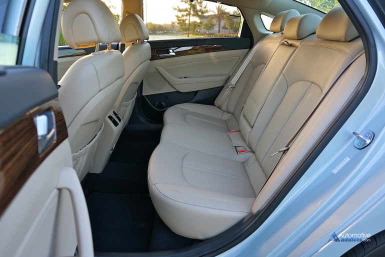 In all, the hybrid “Blue Drive” system in the 2016 Sonata Hybrid Limited proves to put the best efforts of Hyundai at the forefront to when jumping back into the mainstream hybrid game. For a company that is relatively new to the nature of midsized hybrid vehicles in America, the new Sonata Hybrid proves to be a marvel to match the competition and potentially exceed them in some aspects. Part of the king-of-the-hill facets starts with the new Sonata Hybrid Limited’s 60/40 split-folding rear seats with a useable pass-through, best-in-class trunk cargo volume at 13.3 cubic feet thanks to the spare-tire-well-installed compact 1.62 kWh Lithium-Polymer battery pack, and the ability to operate solely on electric power at speeds around 75 mph or more through a decoupling of the gas engine from the wheels, as I experienced on occasion.