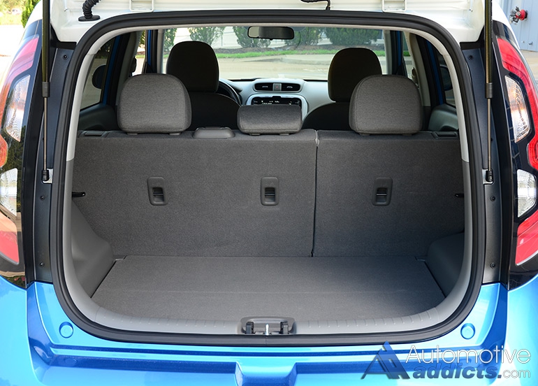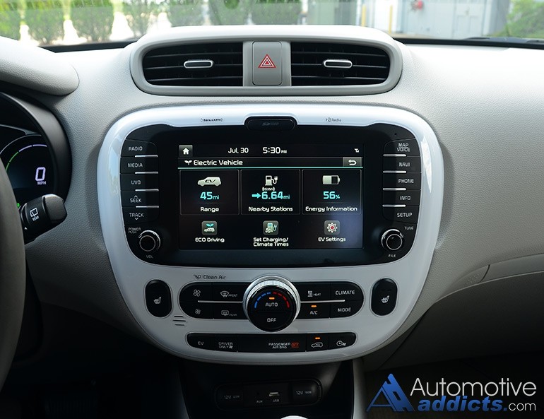 Kia retains much of what the Soul is known for in its colorfully-cheeky design and interior dimensions. The controls, seating area, and over-all interior design doesn’t depart far from its gas-powered counterpart. The abundant use of soft fabric cloth seats is more agreeable to the touch than it is to the eye. With a good amount of soft touch surfaces on the dashboard, the contrast and choice of color palette mixed into the cabin conversely diminish the quality perception. The remarkable performance of the air conditioning and heating system quickly reaching the desired temperature in the cabin slightly make up for the interior’s dullness. For additional energy conservation, there is a “driver only” climate control setting that only powers two vents just for the driver instead of all four in the case of having no other passengers to tote around.