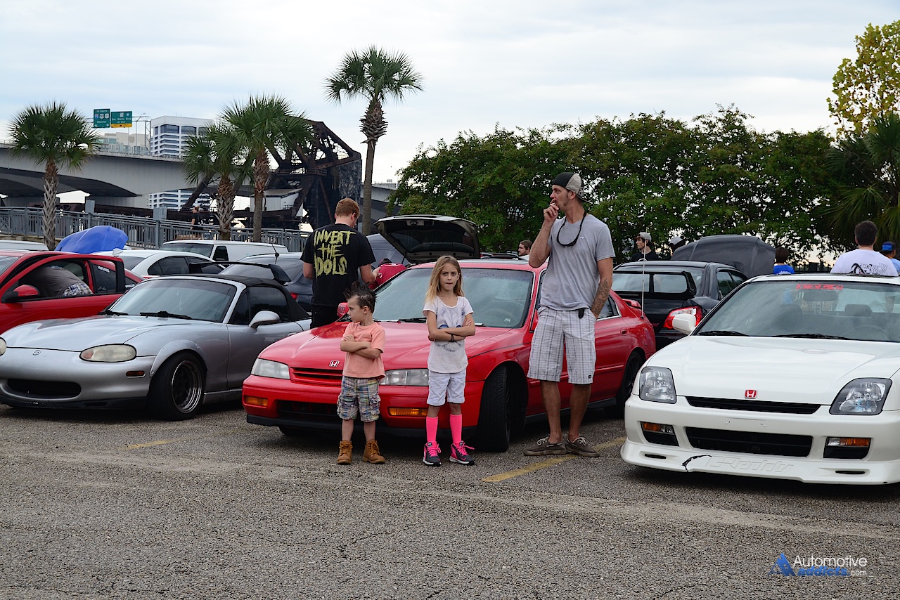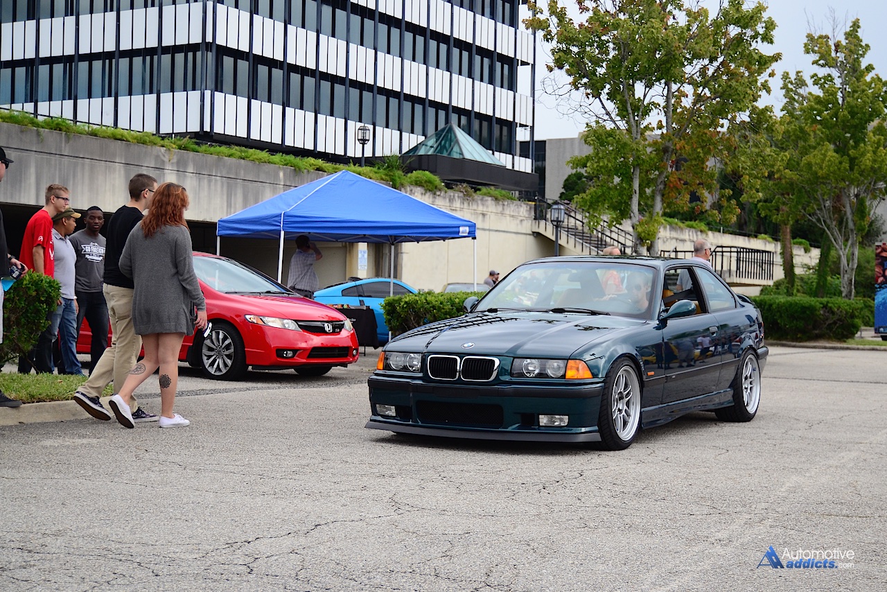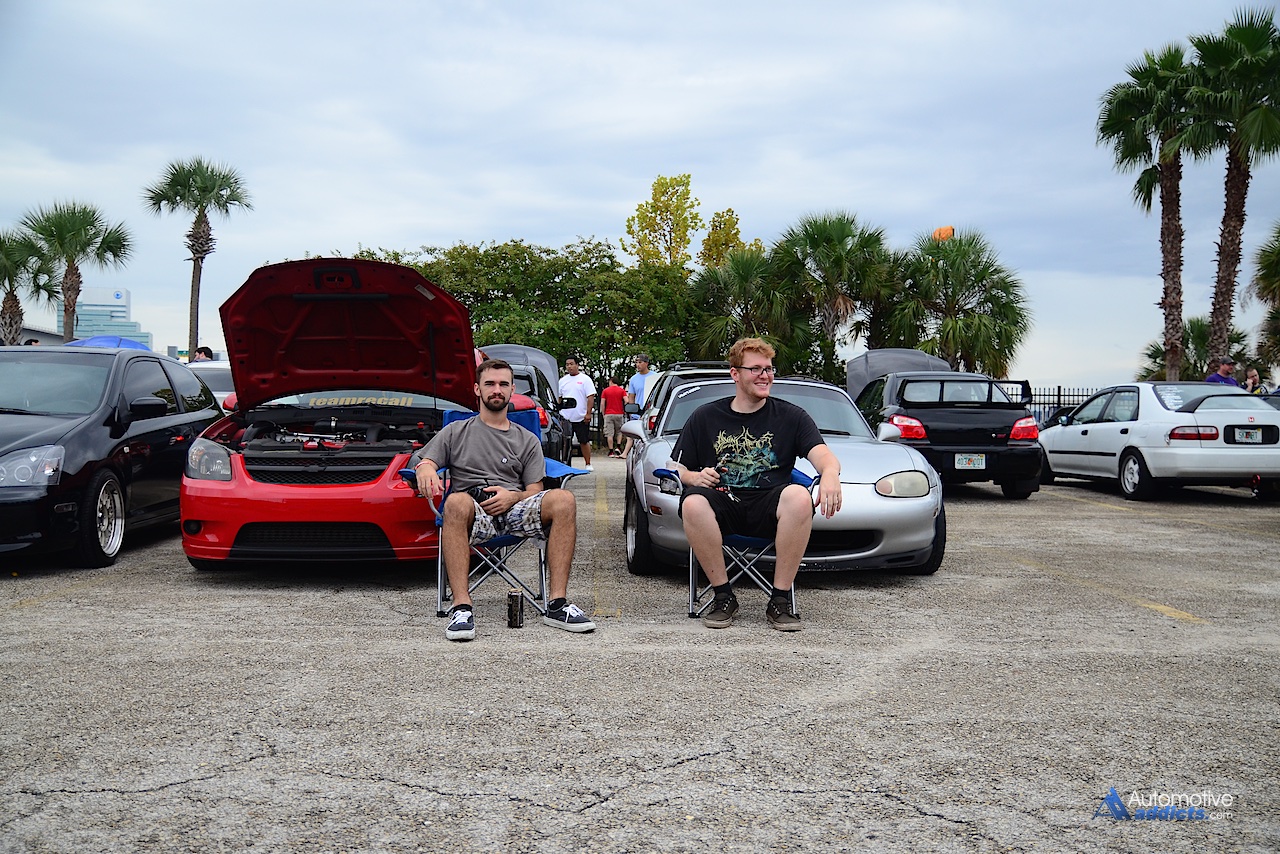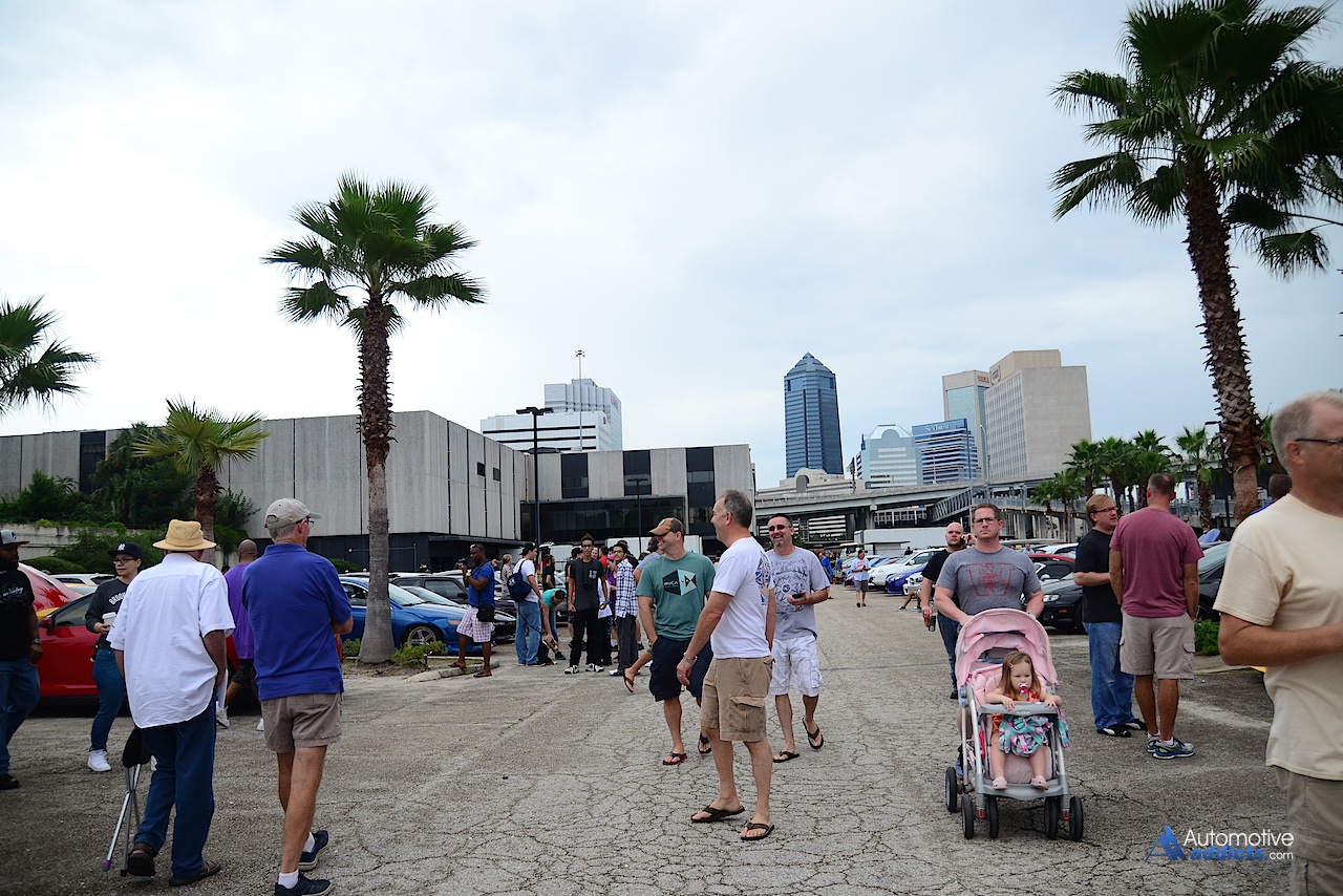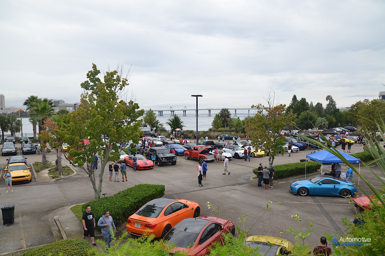 This month the weather was undoubtedly questionable at best but that didn’t keep well over 400 vehicles from piling into The Florida Times-Union parking lot for October 2015’s Automotive Addicts Cars and Coffee event. At one moment we had every parking spot on the lower deck filled with vehicles belonging to our faithful Automotive Addicts around Jacksonville, FL and surrounding areas. There were many rarities to be seen, including a class Lamborghini LM002 (SUV), one of only 328 ever produced. There were several fresh-off-of-the-lot vehicles in attendance also, including Porsche’s new Cayman GT4, Chevrolet’s Camaro Z/28 and many new Vipers, Corvette Z06s and other ‘street muscle’ flexing their way into our lot.