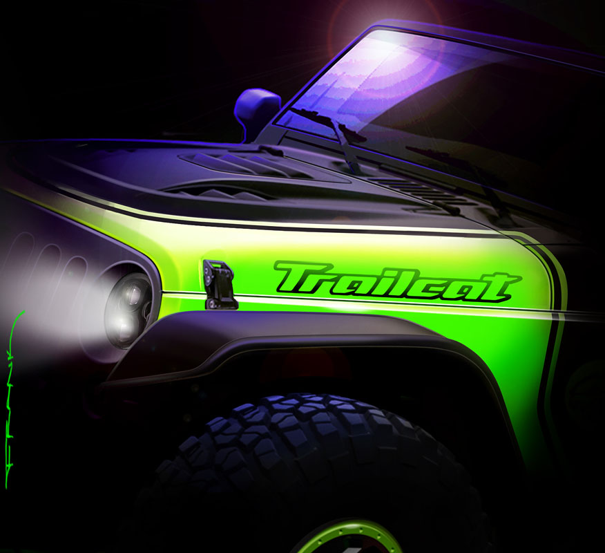 - Jeep Trailcat: Hellcat-powered off-roader capable of crawling or high-speed runs