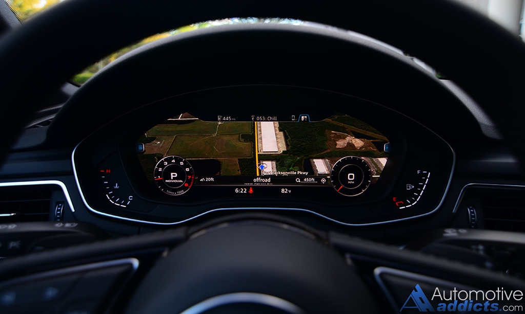 The new cabin of the A4 is customary to the latest design language from Audi, which includes the remarkable Virtual Cockpit that can be set to have a Google-maps-powered navigation display make up most of the dash cluster area. The use of a high-resolution 12.3-inch LCD screen and satellite view of Google Maps goes a long way in creating the perfect virtual display that’s always in proximity to your road-level eyesight. Use of the steering wheel controls for the screen is undoubtedly an acquired taste for most that may require a slight learning curve to become familiar with the full operation of the system. Additionally, the Audi MMI infotainment system fed through an 8.3-inch high-mounted center LCD screen that seems to “pop” out of the dashboard requires a good amount of time to become acclimated to its operation and menu sets. I will say, after spending a good 30 minutes to an hour with the system, it becomes more useful as there are many hidden feature sets and configurable options that make it more user-friendly. The intelligent integration of a handwriting and scrolling touchpad on the center turn dial for the MMI infotainment system is one of the many redundant ways of entering text or GPS navigation destinations.
