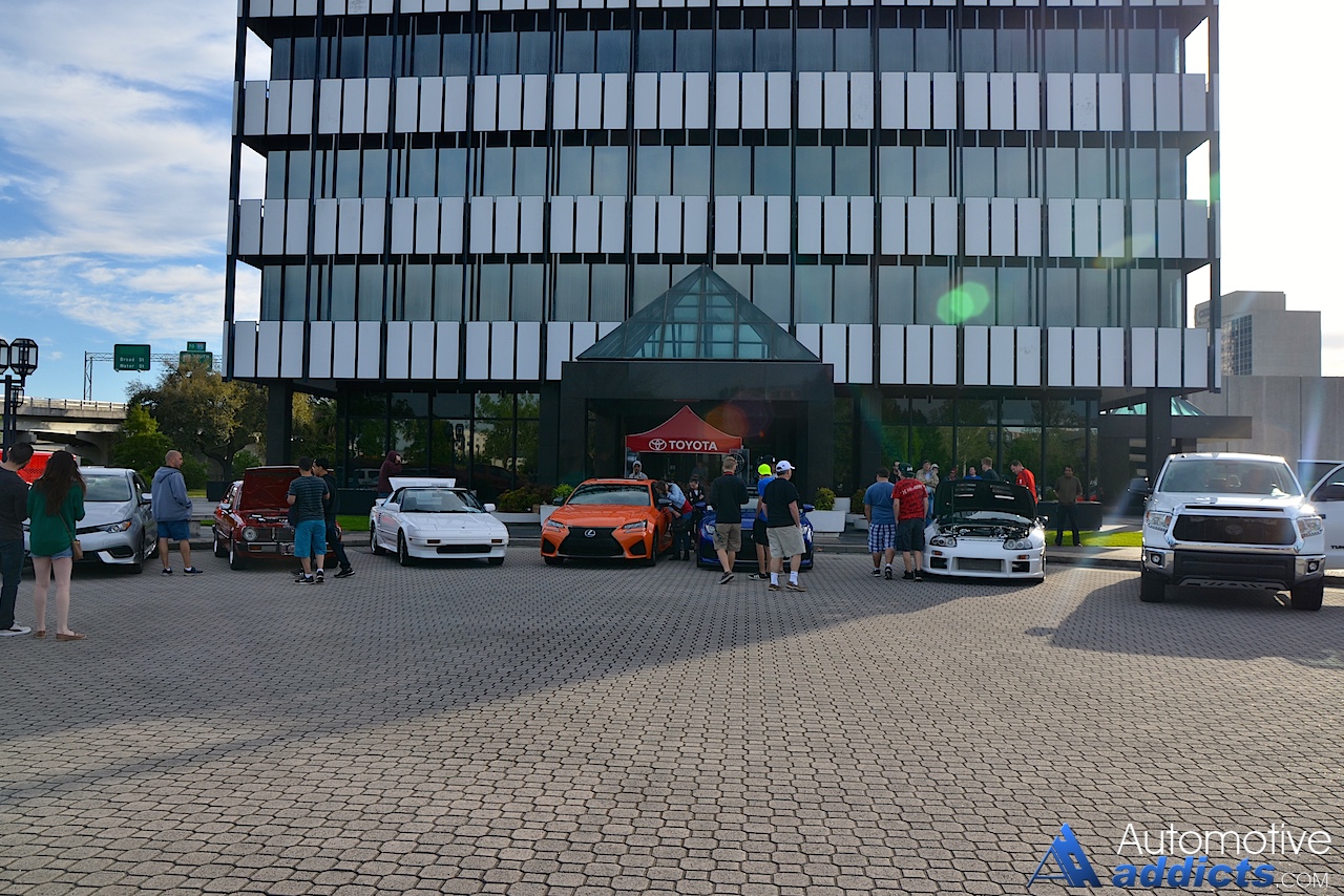 As you may already know, we have been featuring certain vehicle makes on our upper deck each month. The month of April not only brought us some of the most beautiful weather of the year thus far, but having Toyota and Lexus as our primary sponsor for April, we were all mesmerized with several vehicles from their corporate office and from the local-breed SouthEast Toyota facilities featuring many Jacksonville, FL-developed accessories. The month of April was also a community effort where we welcomed many local Toyota, Lexus and Scion clubs to participate in our featured manufacturer display of vehicles.