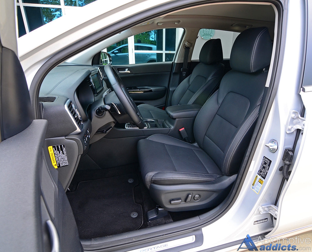 Putting the Kia Sportage SX Turbo AWD at a higher tier when it comes to entry-level luxury, you get standard features like ventilated and heated perforated leather front seats, heated steering wheel, 8-way-power front seats with driver’s seat power lumbar adjustment, backup review camera, push-button start and smart key system, a large panoramic sunroof with a power sunshade, dual-zone climate controls and vents for rear passengers, LED interior lighting, LED daytime running lights, LED fog lights and dynamic bending headlights, power-folding and heated review mirrors, blind spot warning, lane departure warning, forward collision warning with autonomous emergency braking, and a locking AWD center differential. Kia went the extra distance to provide a well-appointed compact crossover with the proper tech and connectivity to meet the needs of today’s consumers.