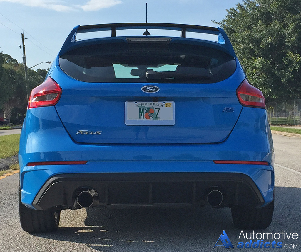 My quick impressions of the new Ford Focus RS fall in line of what I initially thought about the Focus ST when it made its debut, only there is much more substance here in the RS. The major difference is that the RS has more of an attitude and the added ability to fully enter and exit sharp turns carrying a much higher speed and the confidence of all four wheels riding on a virtual track by the way of the optional ultra-sticky Michelin Pilot Sport Cup 2 tires wrapping 19-inch forged wheels. Moreover, the RS is built differently, adding body rigidity and it has noticeably more pulling power than the ST. There was a slight drop off near redline as if it was an invisible shift notification just before the actual “RS” logo shift light emitted letting you know to slip the 6-speed manual into the next gear a hair before 6,800 rpm. Shifting the 6-speed manual, the only transmission available for the RS (thank you FORD!), is a thoughtless effort where the cogs seemed to pull you into each gear with somewhat of an assured landing after release of the perfectly-weighted clutch.