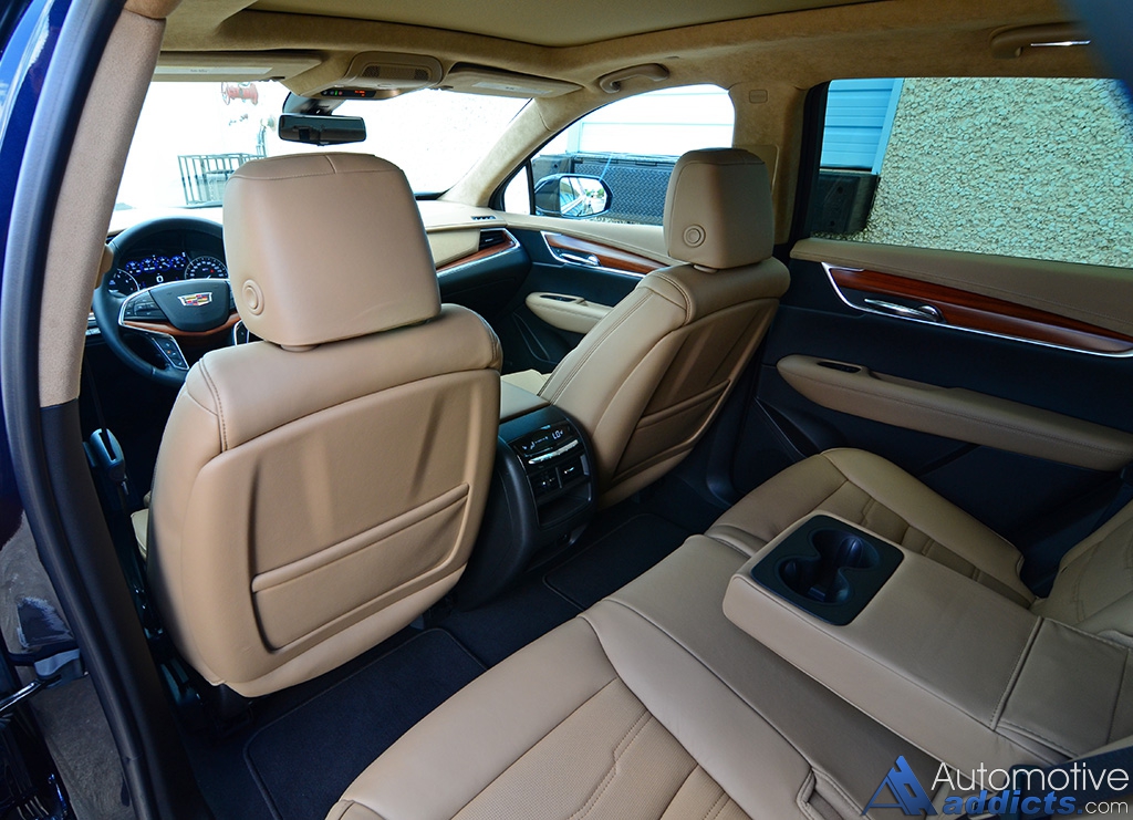 The interior of the new Cadillac XT5 in its Platinum AWD guise is plush and fitting to make best of use of all of its decent proportions. The seating areas are optimal for most, and up front, the top-trim XT5 Platinum gets ventilation and heating with 8-way power-adjustable perforated leather with power lumbar support. The rear seats, with forward and aft manual sliding and rear adjustable seat backs that also act to fold in a 60/40 split, offer over 39-inches of legroom, which is class-leading. The lateral support of the seating is somewhat lacking but overall proves to be comfortable enough on long hauls but with an initial stiffness to them.
