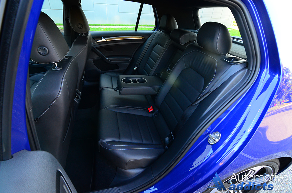 There isn’t much required to extract the practicality out of the Golf R as it resides on the principles that have long been adorned by many, including enthusiasts, which you find in the normal Golf and GTI. The interior continues to be a class act with a soft touch dashboard, upscale-looking materials, dual-zone climate control, backup camera, 8-way power driver’s seat, rain-sensing wipers, Bi-Xenon Adaptive headlights, LED daytime running lights, and nicely bolstered R-emblem-stitched front heated leather seats. To immediately draw come comparisons to its direct competition, the Golf R’s interior is slightly more refined than that of the new Ford Focus RS. Moreover, the Golf R’s front seats are not as aggressive in their bolstering when compared to the Focus RS’ Recaros. The 60-40-split folding seatbacks open up the hatch to just over 52 cubic feet of space.