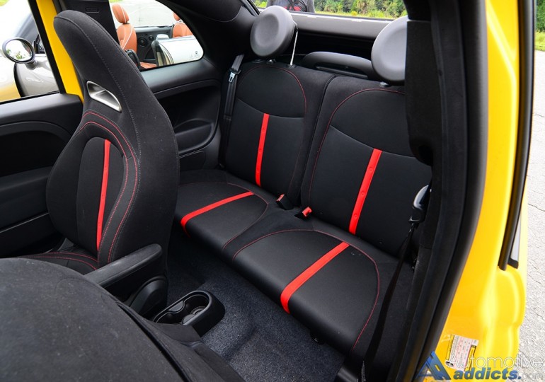 Fiat’s uniqueness has caught on to some but having such a vehicle comes with the obvious compromises when you want to factor in its versatility, or lack thereof. There isn’t any getting around the small factor of the Fiat 500C. Though, up front, the seats have a respectable amount of space and the seats are just comfortable enough for someone like me, who is over 6-feet tall and requires ample legroom. Now, don’t get me wrong, I would never venture into the snake pit and attempt to sit in the rear as it is devoid of usable legroom for normal-sized adults. The rear seating, while slightly more agreeable than the new Mini Cooper S Convertible, is just enough space for two middle school aged kids. Of course, taking a trip in the Fiat Abarth Cabrio is nearly an impossible feat due to having only 6 cubic feet of cargo space, which, to its benefit, can be used at the same time of folding the top down. Though, expect your rearward visibility to diminish with the top down.