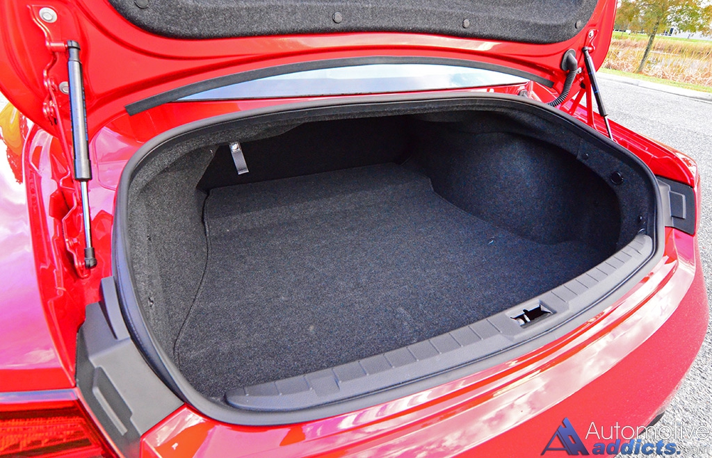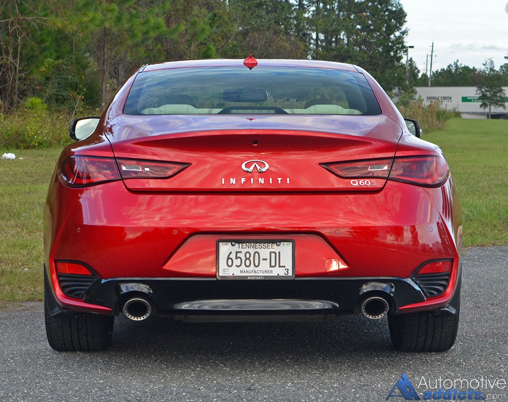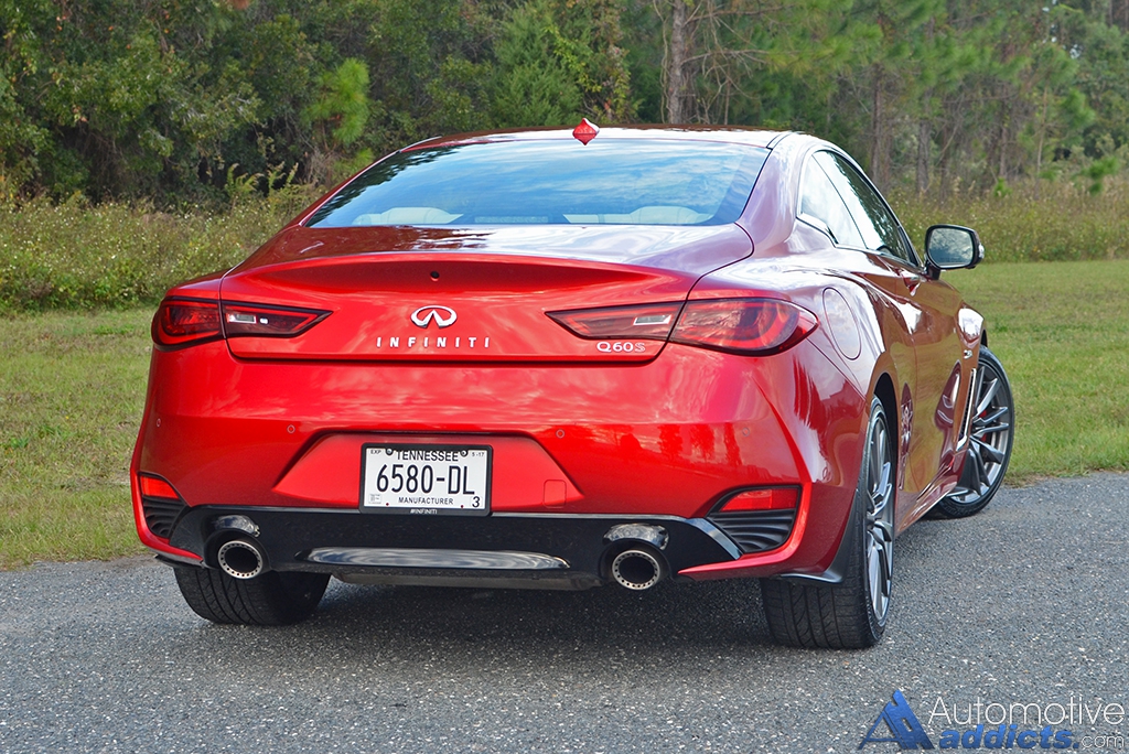 Following closely to the well-received Q60 Coupe Concept vehicle and somewhat inspired by the older Essence Concept, the new Infiniti Q60 is a stunningly beautiful car, one that has onlookers giving my loaded-up test vehicle second looks as it is garnered in a delicious candy apple-reddish Dynamic Sunstone exterior paint. With a total of three defined trim levels and three engine choices, and the availability of all-wheel-drive for each, the new Q60 Coupe attempts to offer something for everyone in the coveted luxury and premium sports coupe segment. Starting with the base rear-wheel-drive Q60 2.0t, the sports coupe gets a 2.0-liter turbocharged 4-cylinder engine with 208 horsepower. From there, the mid-ranged Q60 3.0t gets a 3.0-liter twin-turbo V6 with 300 horsepower. The top-trimmed Q60, which Infiniti is touting as the Red Sport 400, also gets a 3.0-liter twin-turbo engine but with 400 horsepower and 350 lb-ft of torque, as found in my test vehicle. To signify the Red Sport 400 from the other models, the emblems get a red “S” while the 300-horsepower Silver Sport variant gets a silver “S,” and the base model is just left to the Q60 nameplate on the thin-statured composite trunk lid and a 2.0t badge on the side fender.