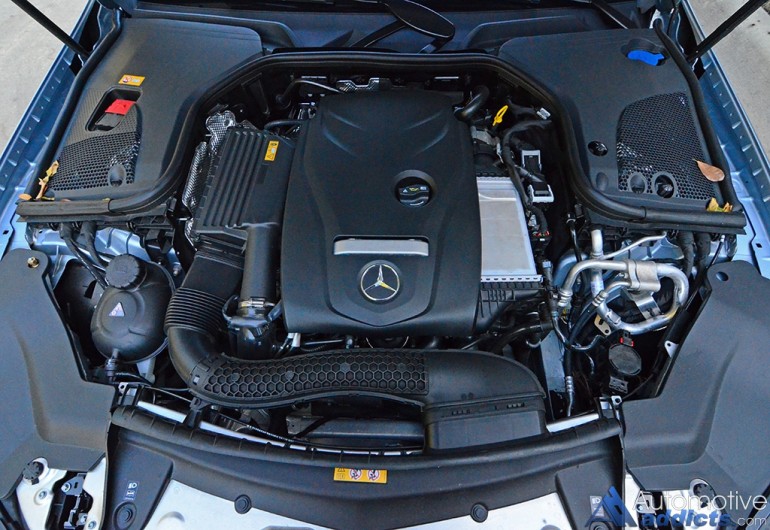 Not to get convoluted in the engineering details with disappointing figures in having a 4-cylinder engine, but, Mercedes’ choice to use a turbo 4-cylinder in the E300 is not a bad one. You see, my time with the E300 I was expected to be let down – only I wasn’t, I was surprised time after time in the consistent power delivery from the E300’s 2.0-liter turbocharged engine with its 241 horsepower at 5,500 rpm and 273 lb-ft of torque that peaks as low as 1,300 rpm. To make things even more interesting is the turbo-four gets mated to a new 9-speed automatic transmission, further improving upon its overall ability to dispel the negative power-lapse connotations of 4-cylinder engines.