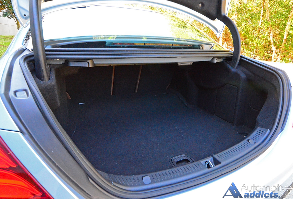 The E300 mostly mimics its larger S-Class sibling – sans the pricier and larger interior volume numbers. The E-Class takes up a clever use of its interior to exude a welcoming cabin, one that is lavishly appointed with the glam associated with its lofty nearly-loaded as-tested price at $76K. Luxury appointments are abounding and easily noticeable as you enter into the E300’s interior. The climate controlled and massaging front seats on my loaded-up E300 4MATIC test vehicle are quite suited for the E-Class with the right amount of bolster support and ample adjustability.