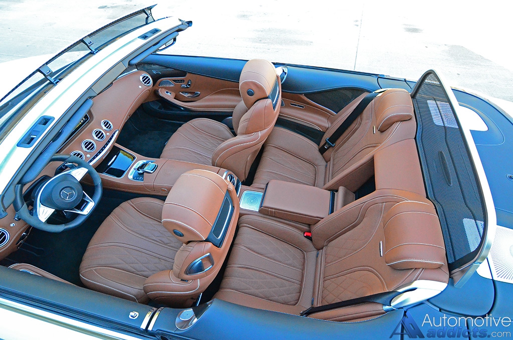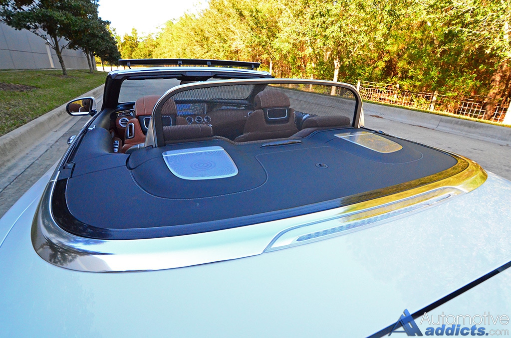The S65 Cabriolet, being a 4-seater coupe-like variation of the larger S-Class sedan, permits a usable rear seating environment. The two rear seats, almost as lush and comfortable as the fronts, are deep and supportive but play with space by the adjustment of the front seats. In other words, if you have 6-feet-plus occupants up front then you must have someone much smaller to fit in the back if you want them to have enough legroom. The rear heated seats are extremely limited regarding amenities when compared to the vast availability of seating options for the S-Class sedan. Though, the front multicontour seats, which are the most comfortable I have experienced in a Convertible vehicle, are well appointed with a 6-mode massaging feature, heating and cooling, 12-way power adjustments, a heated AIRSCARF neck-level heating system, and heated door panels and armrest. Keeping the whipping wind to a minim when the top is down is the job of the AIRCAP wind deflector system, which I found useful on several occasions to keep my hat from flying off of my head on the highway.