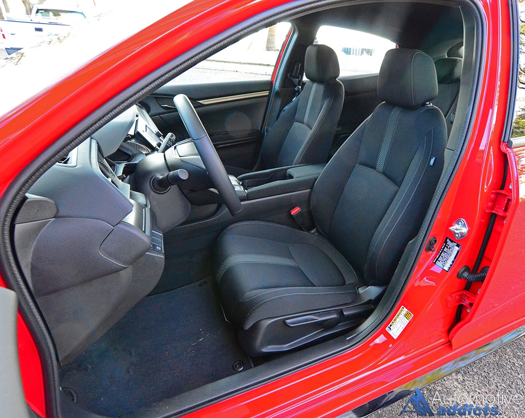Being a hatchback, the new Civic Hatch Sport places its versatility in line with its sportiness. The rear hatch has a plentiful 22.6 cubic feet of space with the rear seats in place. Fold the 60/40-split seatbacks down, and you have a nice 46.2 cubic feet to play with, which is part of the joy of having a hatchback.