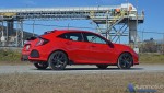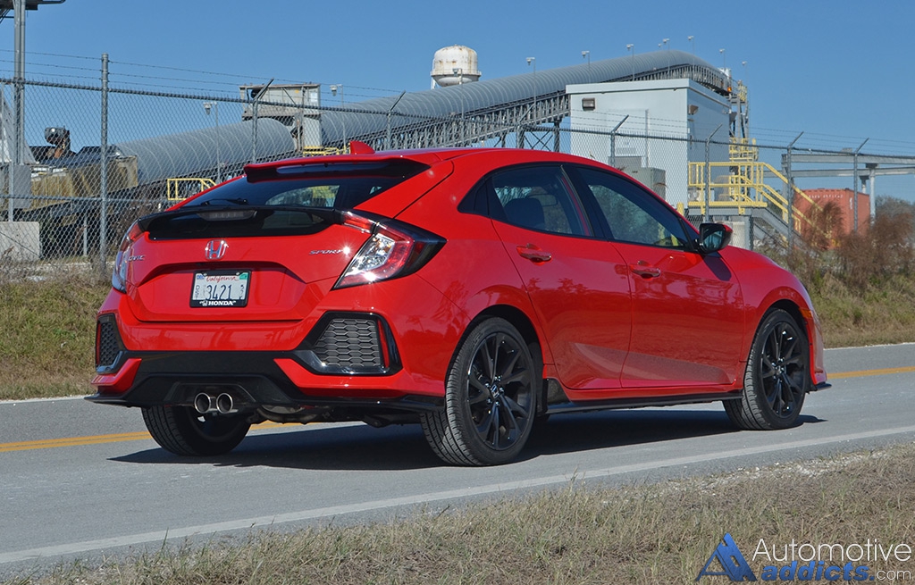Even though the new Honda Civic Hatchback Sport isn’t a rocket ship, it holds its own and gets things moving with assuredness. The balance of the chassis is remarkable for a front-wheel-drive vehicle. At times you forget you’re driving a hatchback where the Civic Hatch Sport seems to appeal to more of a coupe dynamic. Additionally, the ride quality is superb even with the stylish yet larger 18-inch alloy wheels, which add a nice sporty aesthetic to the visual appeal of the Civic Hatchback. There is also a nice exhaust note that you get at certain RPMs from the center-exit dual exhaust.