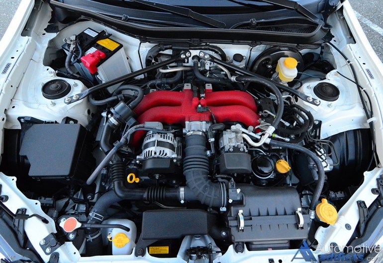 Charting the changes for the 2017 model year, Subaru adds five more horsepower and five lb-ft of torque to the 4-cylinder boxer engine but the power bump is reserved for vehicles equipped with the standard 6-speed manual transmission. Automatic transmission BRZs make do with the original 200-horsepower engine. To muster out the additional five ponies and five lb-ft of torque, engineers gave the flat-4-cylinder better breathing from a larger intake manifold, several lower-friction internals, and an improved fuel pump with lower resistance. The minuscule power addition is only part of the improved formula as the engine appears to have better mid-throttle power and the torque curve seems to drop off later than before in the RPM range.