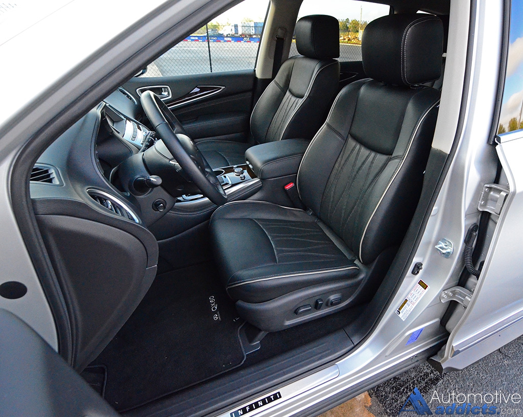 The wood-trimmed and soft-touch dashboard of my QX60 test vehicle has remained virtually the same from the past couple years with the exception of a slightly updated infotainment system. The newer infotainment system bundles in many of the expected older traits of Infiniti controls with a redundancy through the physical buttons and touch screen. However, the system is now mostly unintuitive with a few confusing menu sets and lacking vehicle settings through the center infotainment unit. Many of the essential vehicle settings are now controlled through the steering displaying on the center color driver’s gauge cluster screen. Though, the system’s overall response is good and after taking a good amount of time learning the many screens one could later become acclimated to the odd setup.
