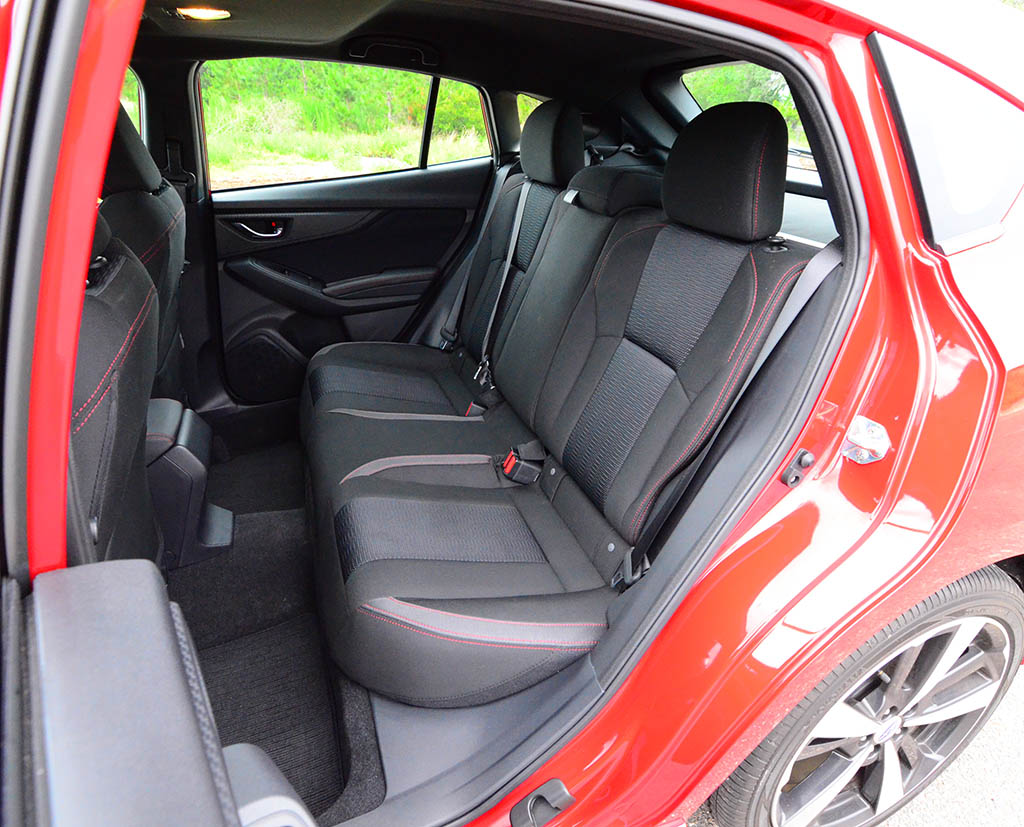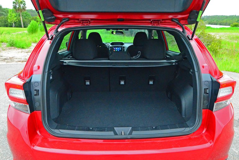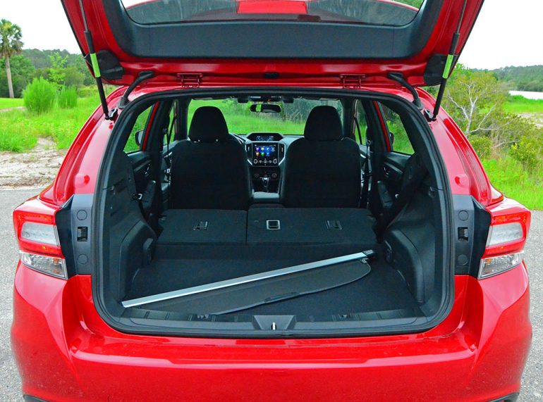 The seating in the new Impreza Hatchback is surprisingly spacious. The basic principles of cloth seating areas and limited seat adjustments were all agreeable considering the ample leg and shoulder room of each seating position. Out back, the rear seats have a good amount of headroom and the cargo area takes advantage of the hatch to giving you just over 20 cubic feet of storage space with the rear seatbacks in place. When folding the 60/40-split seatbacks down the cargo volume opens up to just over 55 cubic feet, which is much more than most of the Impreza’s hatchback rivals.