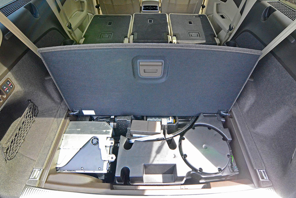 The rear cargo area is very versatile and can open up to 71.6 cubic feet of space with the second and third-row seats folded flat. Access the rear hatch is simple through a power liftgate that can be summoned with a kick of your foot under the rear bumper. With the optional Adaptive chassis package, the air suspension can be lowered in the rear a couple of inches for an easier low loading height.