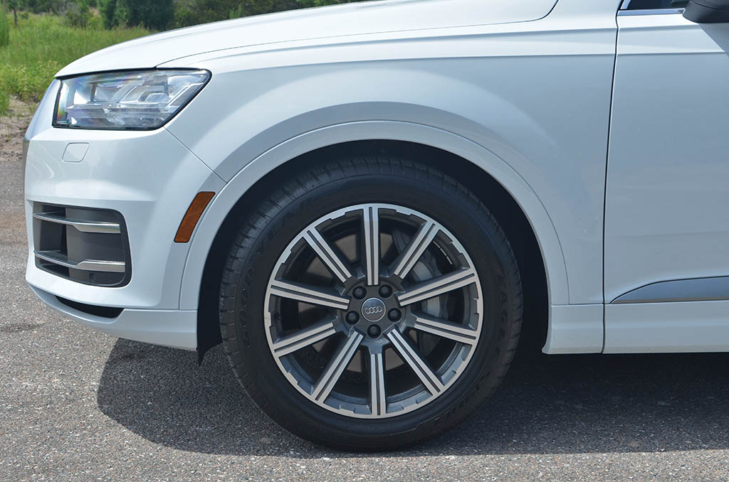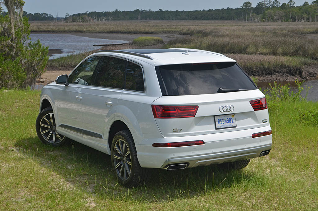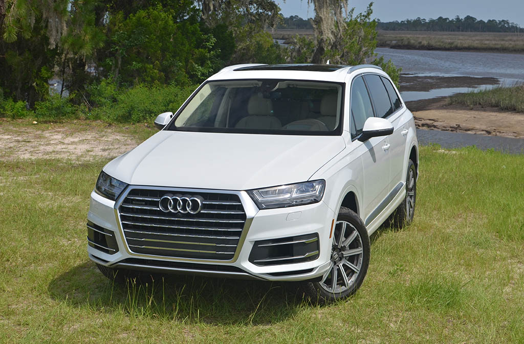 The new 2017 Audi Q7 starts at respectable price point, $49,900 with the 2.0-liter turbocharged 4-cylinder engine. While the power of the turbo V6 was adequate, I imagine the 2.0-liter turbo four-cylinder may be a bit underwhelming to some. At the middle range of the trim, the new Q7 Premium Plus starts at $53,900 and my Q7 Prestige starts at $65,400 and ended up testing out at $75,525 thanks to the addition of a remarkable-sounding Bang & Olufsen 3D sound system, Adaptive chassis package, and the Glacier White metallic exterior paint color.