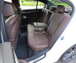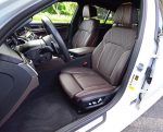 Seating positions are all optimal exception the rear middle seat. Leg room is plentiful up front. Out back, the rear seats can be a bit short on leg room with the front seats halfway to fully adjusted aft. Rear legroom is only up to 36.5 inches, which is about the same as the new Mercedes-Benz E-Class. The front multi-contour seats, taking advantage of the optional Luxury Seating Package, have ventilation, heating, 20-way power adjustments, electronically adjustable headrests, memory functions, and massaging. The optional Luxury Package also adds a classy look with Cognac Dakota Leather with contrast stitching and piping on the seats. Additionally, there is a “bright” ambiance added to the interior with color-configurable ambient LED accent-lighting. Other notable features include the optional soft-close doors, power rear sunshade, power trunk lid, ceramic control knobs, and a delightfully-sounding 1,400-watt and 16-speaker Bowers & Wilkins sound system. Speaking of sound, the cabin is well insulated to the point that most of the mechanical and road noises are isolated and sound is electronically pumped into the cabin noticeable at mid to full throttle inputs.