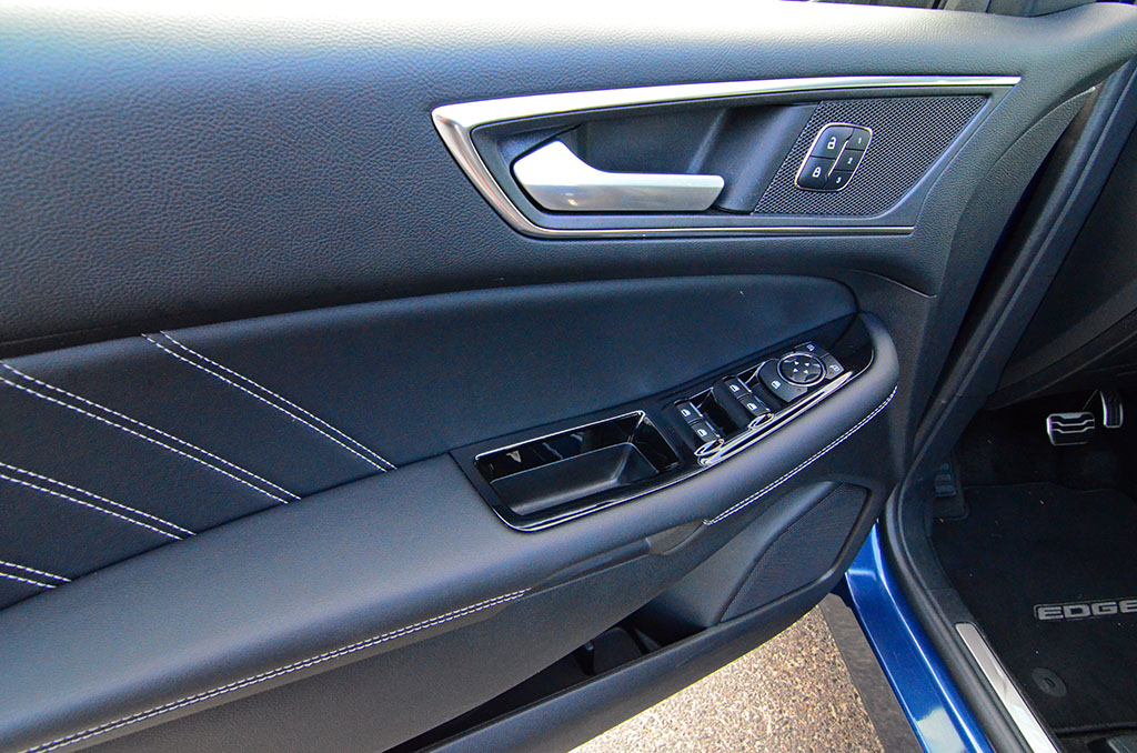 Driving the 2017 Ford Edge Sport I found myself smiling at times when the surge of the ample torque starts to kick in without any apparent signs of turbo lag. Out of the hole, the Edge Sport handles its own well to sprint to 60 mph in just 5.7 seconds. The intelligent all-wheel-drive system nearly evenly transmits power to the front and back wheels upon hard acceleration where the front-wheel-drive bias of the system takes over when cruising. In all, the Edge Sport drives like a sports sedan, albeit with a higher seating position. The proven 6-speed automatic transmission bangs through the cogs without any ostensible confusion but tends to stall a bit when you demand down-shifts through mid-throttle inputs. Most times I found that a harder press of the gas pedal was required to get the proper gear kick-down. Otherwise, the strong torque in the midrange of the EcoBoost V6 felt almost like a diesel engine when the 6-speed transmission would hold a gear – it’s almost as if there was nitrous injected into the engine when you demanded the extra power in the same gear.
