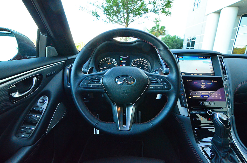 Apart from the lack of a ventilated seat option, the drive-by-wire steering system in the Q50, dubbed the Direct Adaptive Steering (DAS) system, continues to be a love or hate item in the hands of enthusiasts. While the system nearly mimics the best of force-feedback steering setups for your most advanced gaming system, I still find it to be somewhat counterintuitive for those who want ‘some’ feedback from the road to tell the driver what the front wheels are doing. Fundamentally, the DAS system is work-in-progress and could one day be a welcomed part of the what is a decently balanced chassis of the Q50 with robust power from its twin turbo V6 and stopping power from its red-painted brake calipers.