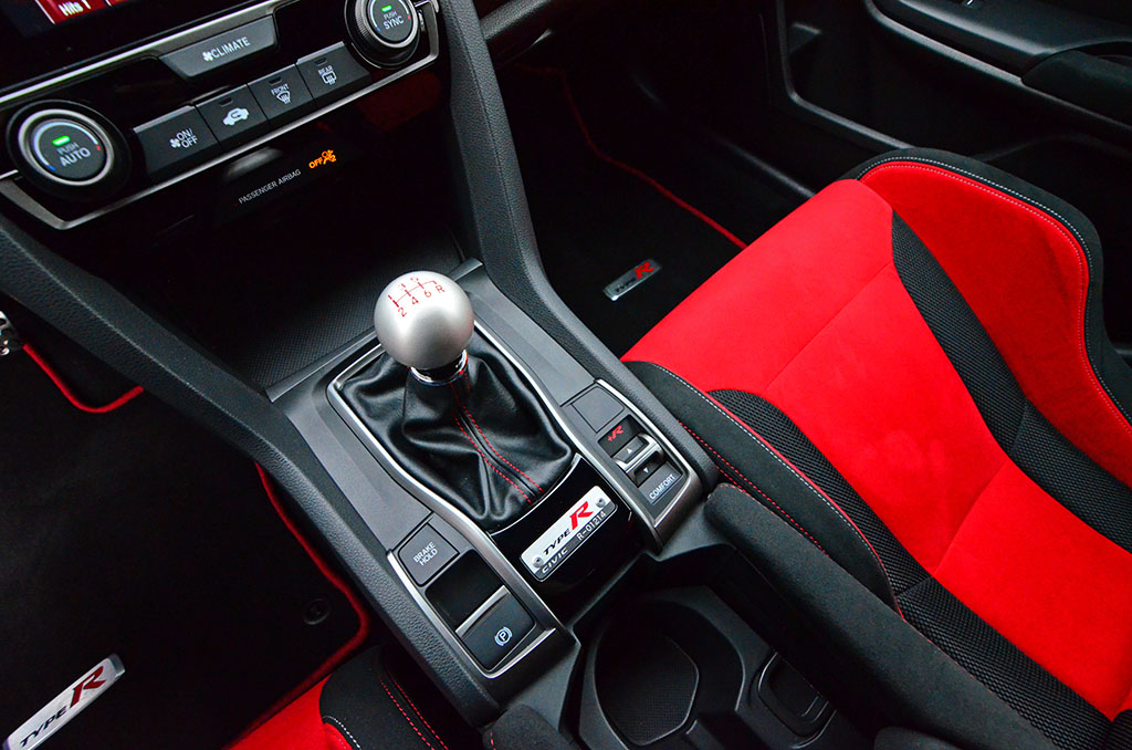 Honda has had a tradition of making some of the best manual transmissions, and the new Civic Type R is no exception. The clutch pressure is spot on, a tad heavier than my GT350 and lighter than the Focus RS. The shift gates are assuring with each throw and the down-shift-rev-matching system, which can be disabled, makes you feel like a pro-driver when you don’t feel the urge to master heal-toe downshifts. Of course, the Honda Civic Type R only gets a 6-speed manual transmission, which is the way it should be.