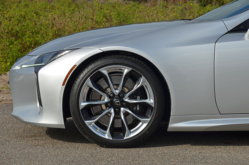 Completing a package for something that many in the Lexus camp may consider to be a true sports car with an initial appeal of luxury, the LC 500 sports large 6-piston caliper brakes up front clamping down on 15.7-inch two-piece ventilated discs and 4-piston in the rear biting down on 14.1-inch discs to bring the LC to a stop in 156 feet from 70 mph. The LC 500 also scores 0.93g on the skidpad, on average.