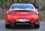 The larger 20-inch wheels and tires, which are a new addition to the Q60 Red Sport 400 for the 2018 model year, have a staggered setup with 255/35R20 up front and wider 275-series rears. Not only do the 20-inch wheels and tires add much-needed grip to lay down those 400 ponies but they add a better aesthetic to the look of the Q60 filling the wheel well giving the Q60 a sleeker and sportier appearance. Onlookers of the new 2018 Q60 Red Sport where almost intrigued to the point that many thought I was driving an exotic. The candy apple-reddish Dynamic Sunstone exterior paint only added to the exotic look with small carbon fiber trim pieces on the front fender vents, fog light finishers, exterior mirror caps, and a carbon fiber rear spoiler. I must say, the bits take the overall look of the Q60 to a new level!