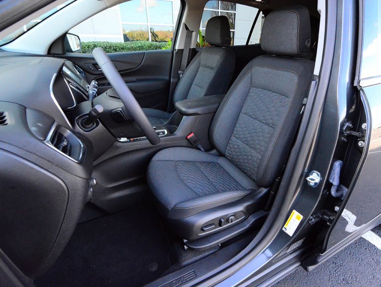 The cabin of the new 2018 Chevrolet Equinox is spacious and nearly deserving of a midsize classification. Within the realm of being a compact crossover, the Equinox does have plenty of seating space up front but slightly disappoints with the cargo volume falling short of its competition. In the driver’s seat, it can take a while to find an optimal position much in part due to limited travel of the telescoping steering wheel. Most of the interior materials are somewhat cheap-feeling with an abundance of hard plastics and very limited soft-touch surfaces, which are mostly left to small trim areas. The hard-plastic dashboard doesn’t contrast well to exude the least bit of luxury, which tends to cheapen the overall feel of the Equinox in any of its four basic trim levels.