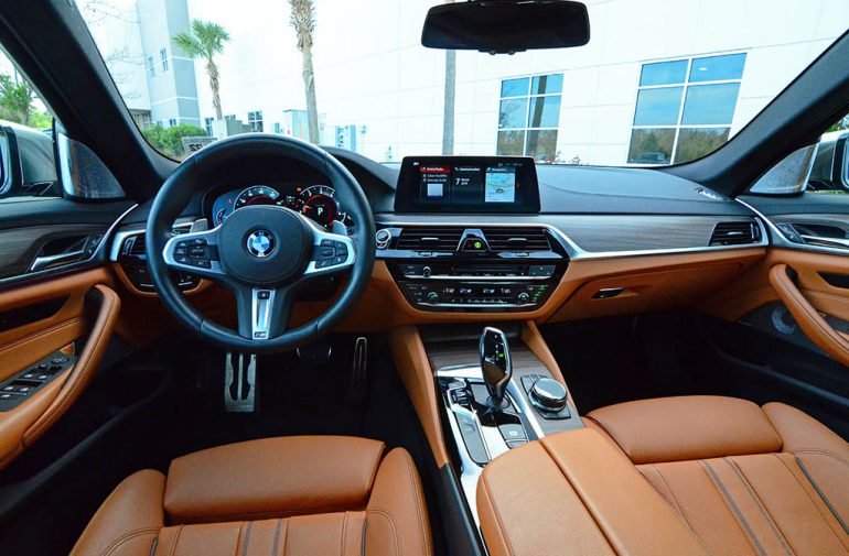 The traditionalist BMW fan, or luxury sedan buyer for that matter, will feel right at home inside of the new M550i as it takes the new trend for the German brand and stays true to its many improvements over previous generations. The latest iDrive infotainment and control system is the best yet, as I have explained in previous new BMW 5 Series reviews, sporting the latest touchscreen interface and simplified menu sets. Much of what I liked in my many 5 Series and 6 Series reviews is kept intact in the new M550i from the wireless Apple CarPlay integration to the comfortable but supportive 20-way multi-contour power front seats.
