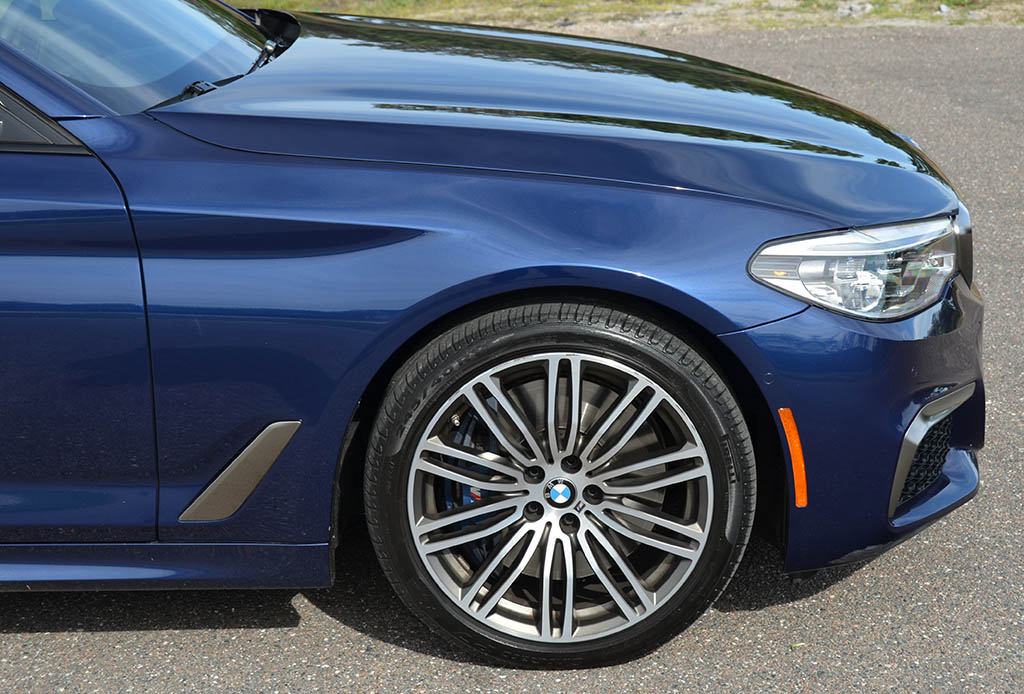 My nicely optioned, but not fully-loaded M550i xDrive test vehicle, cashes out at a price of $88,985. The $88K price includes many highlighted options, such as the Driving Assist (color heads-up display) and Driving Assist Plus Package (active driving assistants), Dynamic Handling Package (adaptive M suspension, active roll stabilizations), Executive Package (soft-close automatic doors, ceramic controls, wireless charging, WiFi hotspot, enhanced USB & Bluetooth), Parking Assist Package (parking assistant plus, surround view w/3D view camera system), Night Vision, Bowers & Wilkins sound system, Gesture control, and Apple CarPlay compatibility.