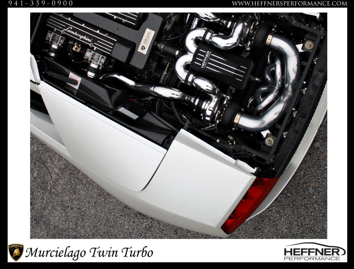Many people have been awaiting the completion of the infamous Heffner Performance Twin Turbo Lamborghini Murcielago. That day has finally arrived. The 100% complete project was a little bit more involved than slapping on a pair of turbos onto the 580hp 2003 Lamborghini Murcielago. From the images below you have to admire the attention to detail that does not compromise the top-notch craftsmanship already put into this remarkable supercar. It is a nice addition that works well with the stock Murcielago foundation to plant an astonishing 1100 horsepower down to the pavement through two wheels.