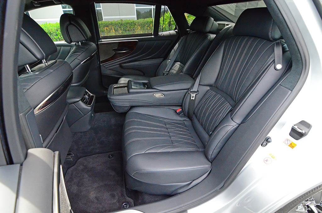 Looking at the new 2018 Lexus LS 500 through the lens of German luxury buyers one would easily conclude that Lexus has aced its homework to improve upon the overall driving dynamics of such a large vehicle that tips the scale in at just over 4,700 pounds. The new LS 500 in its standard rear-wheel-drive and non-F-Sport flavor does just fine to keep the body composed and never sloppy. In all, the composure from the adaptive dampers and optional air suspension system proved to be sportier than the LS has ever been – which is right where such a vehicle needs to be if you ever wondered. The adaptive dampers react fast in every drive mode (Eco, Comfort, Normal, Sport, Sport+, and Customize) to prevent body bounce going over lumps in the road. The suppleness of the suspension never gives away to unwanted body motions even when slightly pushed hard through turns, under hard braking, and during full throttle acceleration if you ever need to reach 60 mph in the 5.3 seconds that the RWD LS takes. If you’re taking note, that’s about 0.3 seconds faster than the V8’s best time. Moreover, lateral handling has improved when you start to crunch the numbers averaging 0.85g for the RWD model and 0.86g for the all-wheel-drive LS on the skidpad. Despite the performance improvements, Lexus has managed to improve upon the ride quality, which when moved more to the sport side of things doesn’t always translate into a smooth ride – but does with this new LS. The LS 500 soaks up bumps, rough road surfaces, and keeps the cabin sometimes eerily quiet thanks to cleverly placed sound dampening along with acoustic door windows up front and two out back making up a unique 6-window design. The optional Mark Levinson sound system with 23-speakers aides with active noise cancelation and keeps your ears titillated from the rich sound from many dimensions within the airy and accommodating cabin.