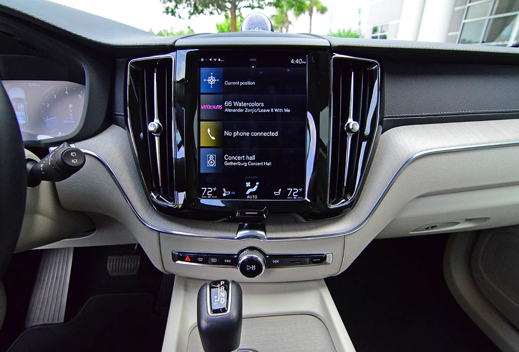 Having a techie feel on the inside is just what new-age buyers seek and it’s what the Volvo XC60 serves up in a luxurious approach without overdoing anything. Within the higher-level Inscription trim, the XC60 receives many upgrades and an interior that exudes a delightful taste of luxury with many soft-touch surfaces, nicely done chrome-clad trim pieces, and unique driftwood trim to complete luxurious theme. Taking many of its design and control placements from other new Volvo vehicles, the XC60 puts just the right controls where the need to be, including the large 12.3 infotainment touch screen that fundamentally combines a plethora of on-screen vehicle controls. While I don’t mind the multitude of vehicle controls being on-screen, the initial boot or startup time of the system could use some improvement to make the experience better. Though, once the system has loaded fully after about a full 45 seconds to a minute after starting the vehicle, the touchscreen is ready to allow the more important adjustments take place, such as the multi-zone climate control temperature or display of the rearview camera with the option of switching to a 360-degree camera. Speaking of the camera, the slow initial load of the infotainment system prevents the camera from displaying when you need to back out of a space quickly upon starting the vehicle. Yet, another aspect that is hindered by the slow load time of the system.