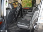 I call QX56 a luxury liner because it reminds me of the interior of the finest luxury power boats with its use of authentic materials such as wood veneer, aluminum, stainless steel, Sojourner leather-appointed seating surfaces and thick Tuscano carpeting. The interior boasts class-leading 2nd-row legroom (41.9in.) and a standard power fold-flat 60/40-split 3rd.-row seat.
