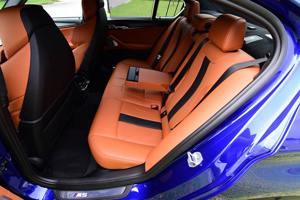 Just like a fully-loaded BMW 5 series, the creature comforts are all in place in the new M5 and there isn’t much to differentiate a loaded-up 550i from the M5 other than a few specialized trim areas, being the two configurable steering wheel M buttons, and the supportive yet comfortable 20-way adjustable multi-contour front seats with massaging, heating, ventilation, and an illuminated ///M logo. Out back on my loaded-up test vehicle, the leather-appointed seats feature heating, manual side window sunshades, power rear window sunshade, and two additional climate zones as part of the optional Executive package on my test vehicle.