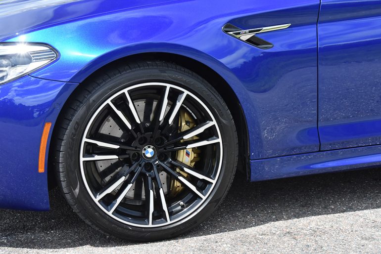 The braking of the new M5 is just as serious as the acceleration or even more so thanks to my test vehicle’s optional carbon ceramic brakes, which feature 6-piston front rotors and an odd pair of single piston rears. The braking is often abrupt and somewhat inconsistent if you’re attempting to keep things smooth when slowing from low speeds. Still, the inconsistency doesn’t take away from the brakes ability to clamp down hard and bring the big M5 to a stop in just 110 feet from 60 mph. There isn’t any fade and the brake pedal remains firm ready for the next challenge even when you’re carving some high-speed back roads that require a lot of repeated braking. I expect such a pleasing quality in the brakes to carry over to track duties.
