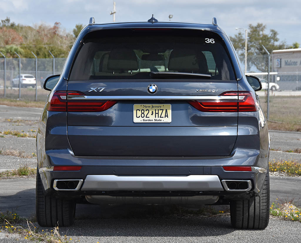 Powering the new X7 xDrive50i is BMW’s twin-turbo V8 with 456 horsepower and 479 lb-ft of torque that feels more like north of 500 horsepower and even more torque once you put your foot down. Overall, the X7 drives smaller than it is and feels nimbler than something so large should. Some of that is thanks to my loaded test vehicle having massively-sized 315/35 R22-inch tires and an adaptive air suspension system that comes standard on all trim levels. The four-wheel steering added to the agility of the X7, virtually shrinking its elongated wheelbase.