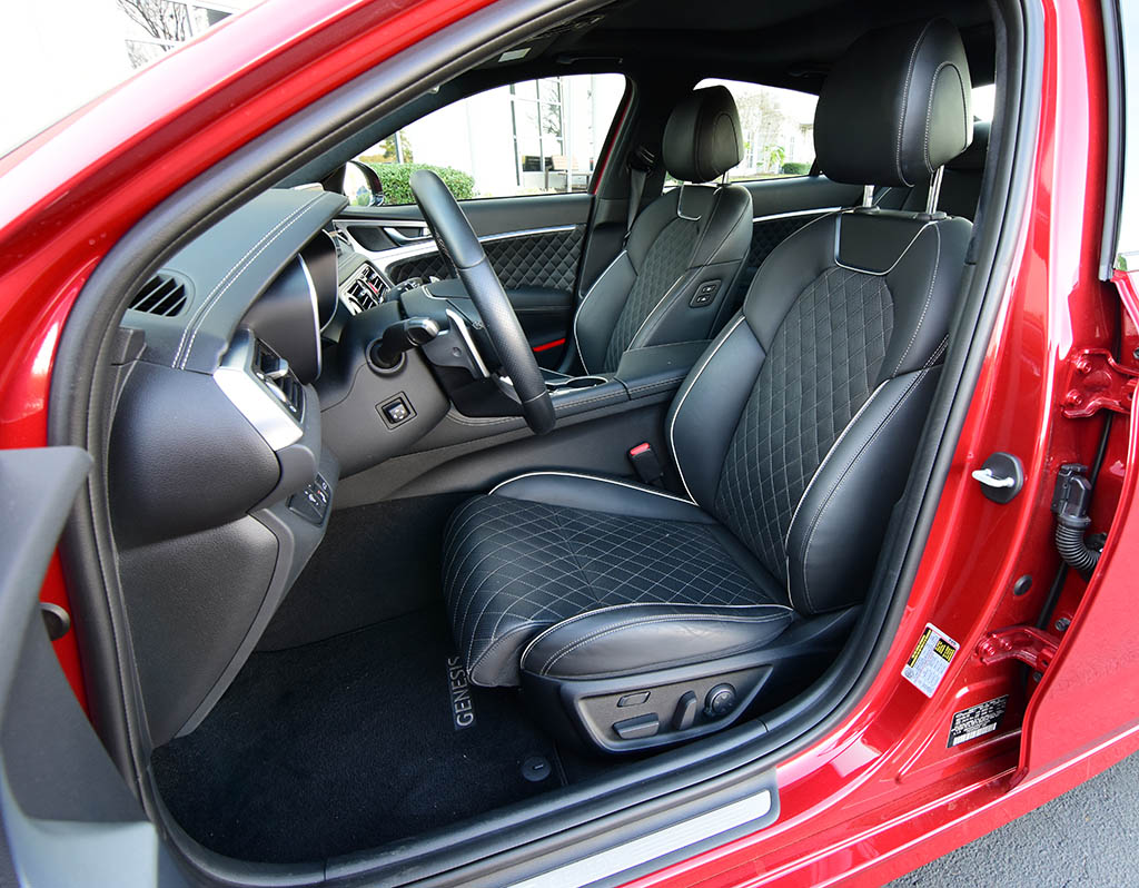 When not comparing the G70 to the Stinger and consider the pricing of BMW and Benz competitors, things tend to get even more interesting considering the many features that the G70 offers along with the proper luxury appointments and materials that you expect from a mainstream luxury car brand. My guess is that the G70 won many over when selecting it for the North American Car of the Year when looking at the collective of parts that it offers. In its upper trim levels, such as my loaded-up RWD 3.3T Sport test vehicle, the G70 doesn’t skimp on features and even titillates your senses with decoratively stitched quilted leather seating surfaces and door trim areas, power-adjustable front seat bolsters, plentiful soft-touch surfaces throughout the interior, and pleasant trim pieces to balance out the interior’s theme.