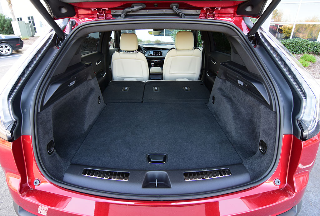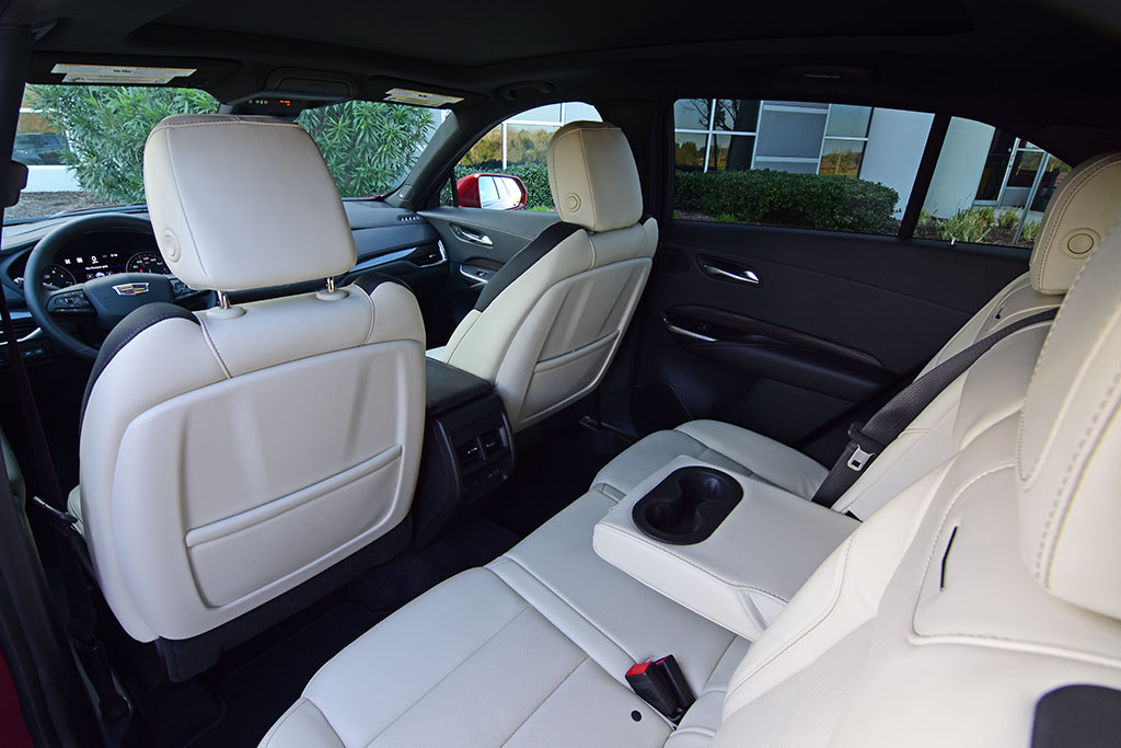 The size of the XT4 is somewhat deceptive, which is a good thing considering keeps up with the pack for usable cargo space and is quite comfortable up front and out back for someone like me over 6-feet tall. The front seats offer heating, cooling, and a massage feature in my loaded up XT4 AWD Sport test vehicle. The heated back seats, offering a split 60/40 seatback fold, are usable for adults and prove to be comfortable. Though, the comfort and room in the back is mostly dependent on how far back the front passengers adjust their seats. Shockingly, the back seats offer just enough room for most adults and are comfy on long hauls. Folding the seat backs provide a decent cargo space that falls in the middle of the row for space when compared to the competition.