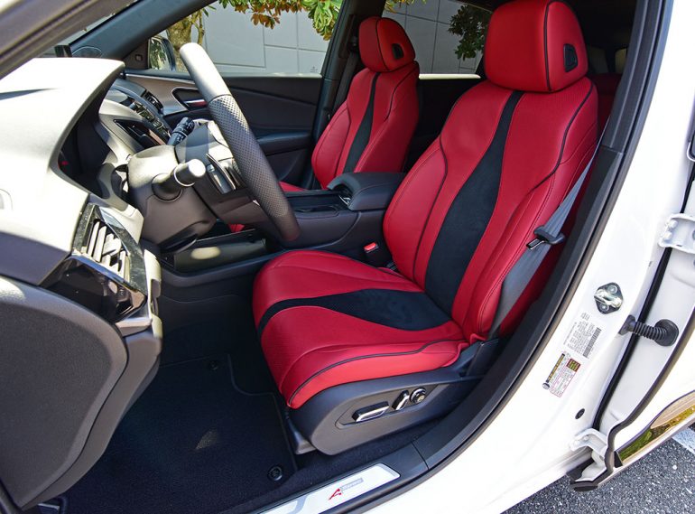 The heated and ventilated front seating areas of the new RDX are cleverly positioned as are the rear seats making wise use of the interior volume that is more abundant than much of its competition. With the RDX A-SPEC trim, the perforated leather seats have sporty accents and are well bolstered up to the task of keeping you in place for all of the lateral forces that the RDX can muster.