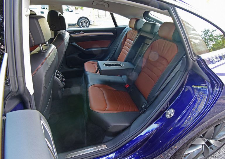 The interior of the Arteon doesn’t quite live up to the stunning premium-clad exterior in some ways. The interior is almost luxurious with some Audi-esq traits as the exterior pulls off an amazing act to fit the part of a luxury sedan. Inside, the dashboard is mostly soft-touch with aluminum trim as are most of the door trim areas. The virtual cockpit instrument cluster, a page nearly taken out of the Audi book, is a nice component where you can view your navigation mapping in the center with the two virtual gauges to your left and right. The 8-inch infotainment unit is a welcomed charm taken from the VW family that continues to provide a user-friendly experience with quick-to-respond controls and seamless integration of Apple CarPlay and Android auto. The Dynaudio premium sound system is strong and provides a clear concept of sound throughout the cabin. The seating areas are comfortable with ventilation and heating upfront with a light lumbar-area massage feature for the driver’s seat. The front seats are very supportive as well with some light bolstering. Out back, I was surprised to find enough room for me to sit with me being 6 feet 3 inches tall.