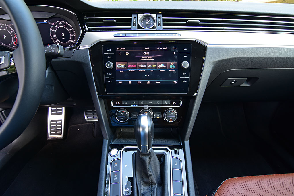 Making up for the shortcoming in power is a nicely balanced chassis. There’s even an electronic differential lock to aid the 4Motion system to provide power to where it’s needed. The Arteon out on the road is exceptionally stable and proves to inspire confidence in its handling abilities without divulging from initial comfort. The adaptive suspension dampers are nicely dialed in conforming to each drive mode with a subtle adjustment. There is even some customization of the DCC adaptive chassis control, which allows you to position an on-screen slider to your desired level of damper stiffness from the scale of comfort and then slightly past the sport setting for even stiffer dampening over the default sport mode. Such a setting is claimed to give the driver a more direct connection between the driver and the road. Does it pull off such an act? In a way, yes. While the steering feel is direct and mostly precise, it does not provide much feedback from the road. The nicely sized 19-inch wheels of my test vehicle with low profile tires do a good job of adding to the stability of the Arteon while the suspension soaks up road imperfections and those that may be exacerbated by the stiff sidewalls of the tires.