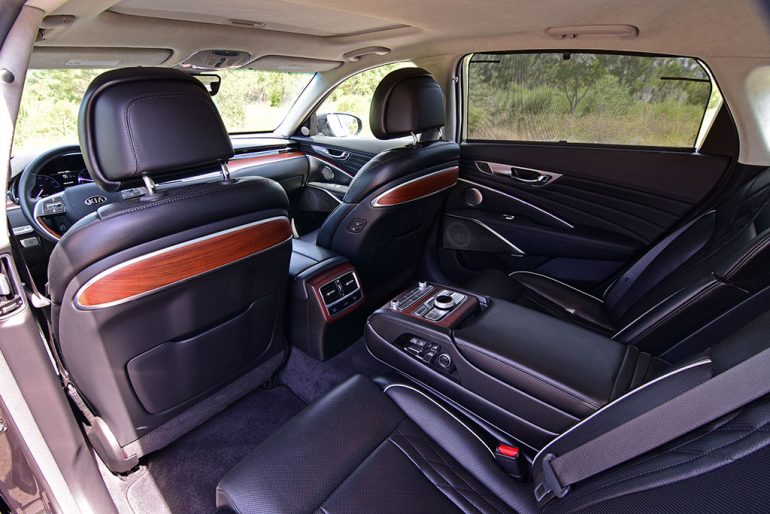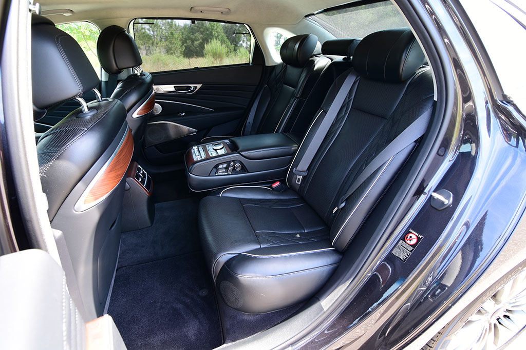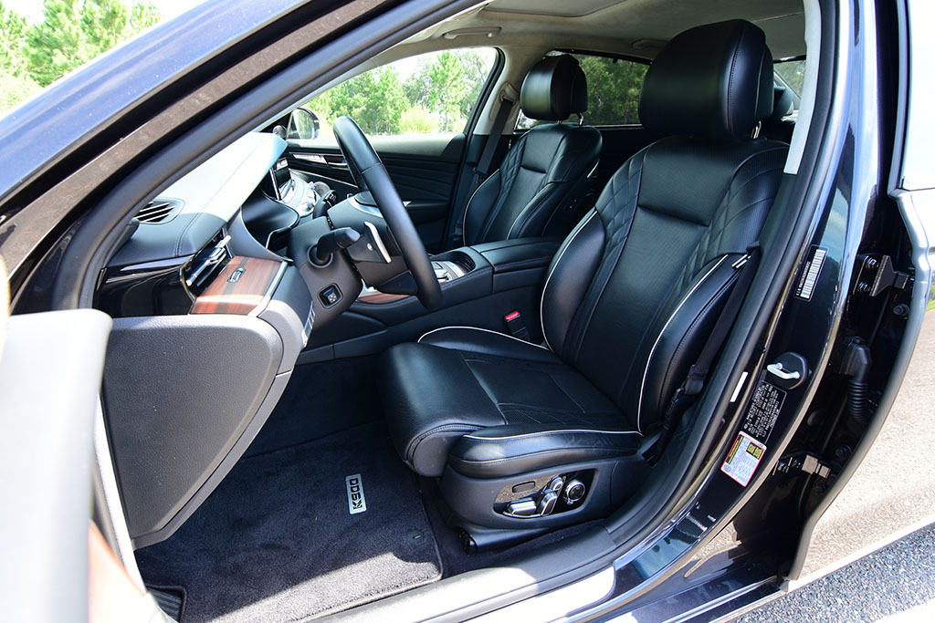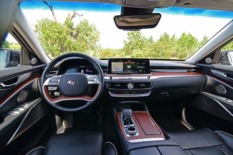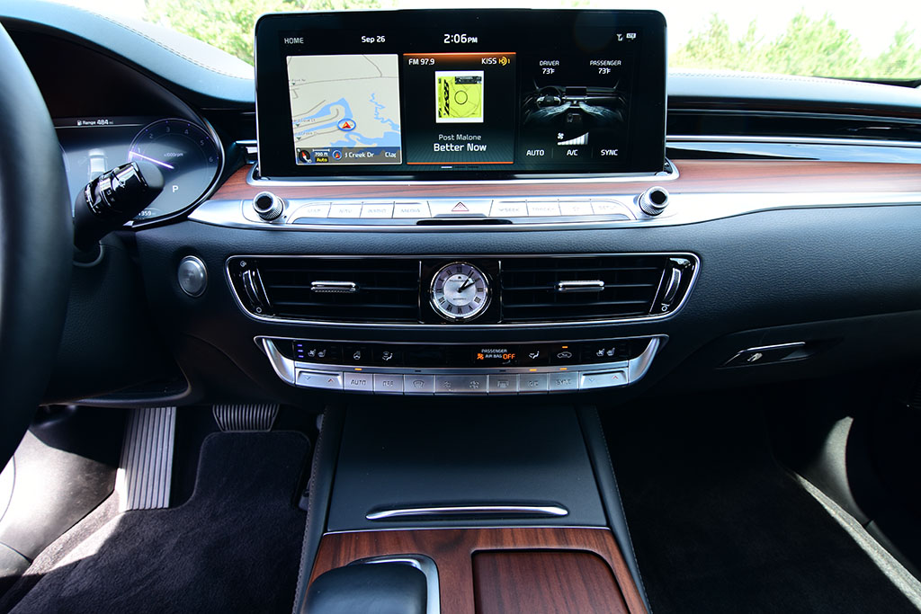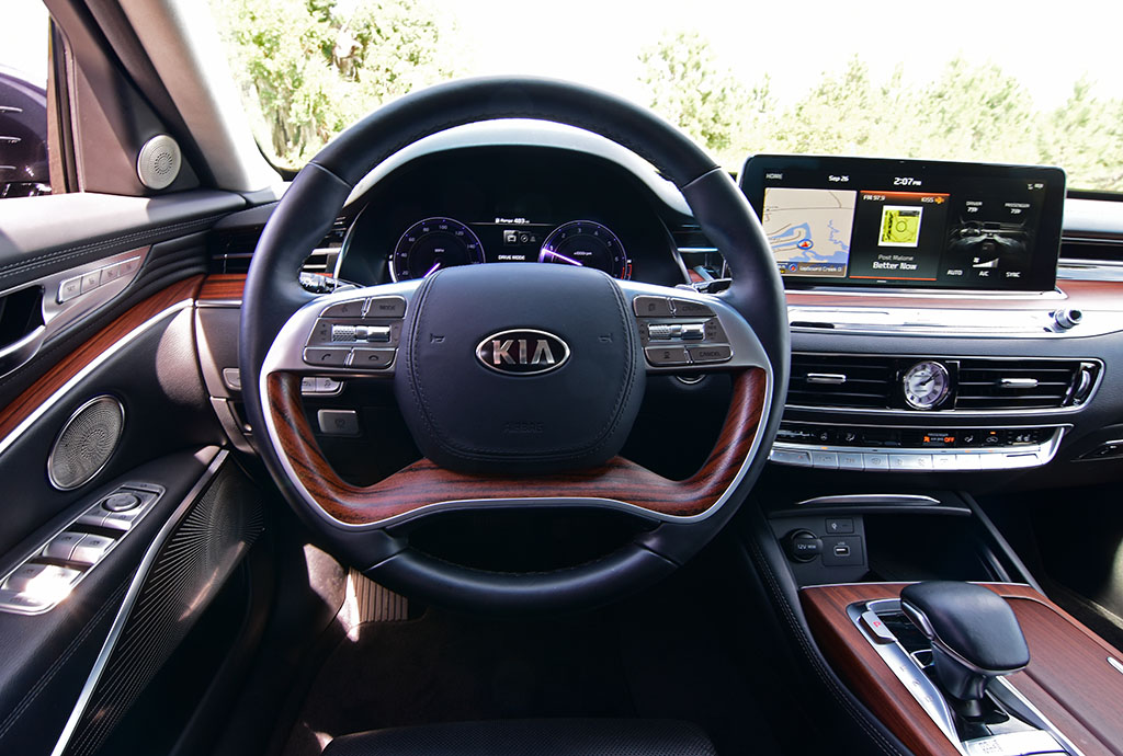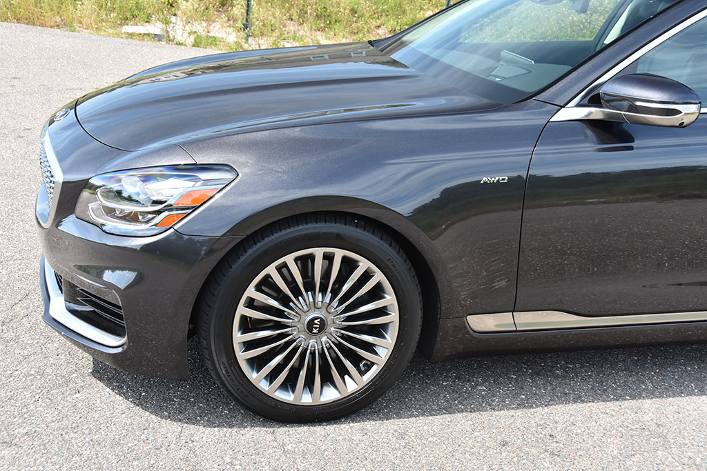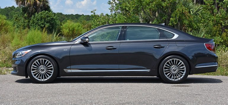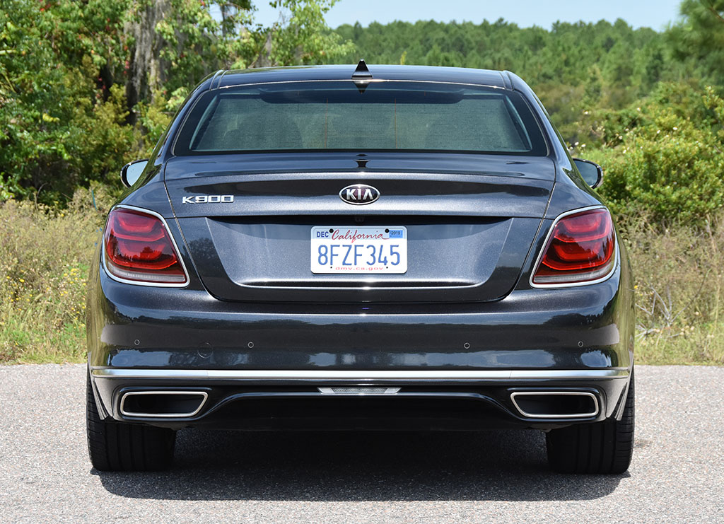 There is much to like about the K900 with its mostly unique styling that fits the mold of a luxury sedan with the expected exterior LED lighting, classy 19-inch wheels wrapped with wider rubber out back than in front, and an overall eye-pleasing look to its softly sculpted body lines.