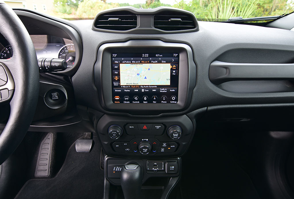 The interior of the 2019 Renegade is mostly monotone but filled with clever easter eggs of Jeep symbols throughout. In fact, there is an abundance of such symbols where I lost track of how many FCA cleverly placed throughout the interior and exterior of the Renegade. Despite the excessive symbolism, the Renegade’s interior isn’t very comfortable, and finding a good driving position takes some time. The back seats are mostly tight with limited legroom. The good aspects of the interior is a soft-touch upper dashboard and the welcomed 8.4-inch touchscreen infotainment system that remains to be one of the best in the market for mainstream non-luxury vehicles, which includes Apple CarPlay, Android auto, and a bevy of connectivity features. As part of the refresh for the 2019 Renegade, Jeep adds the availability of adaptive cruise control and a suite of parking assistance options.